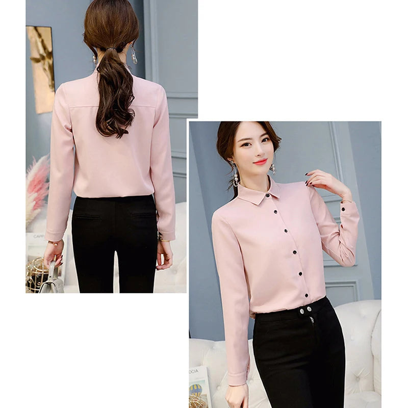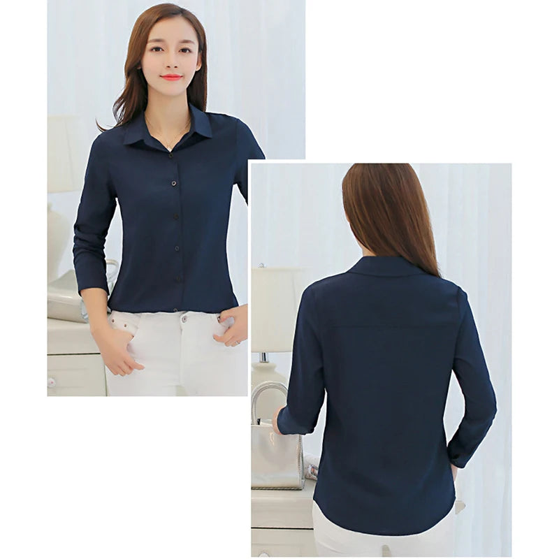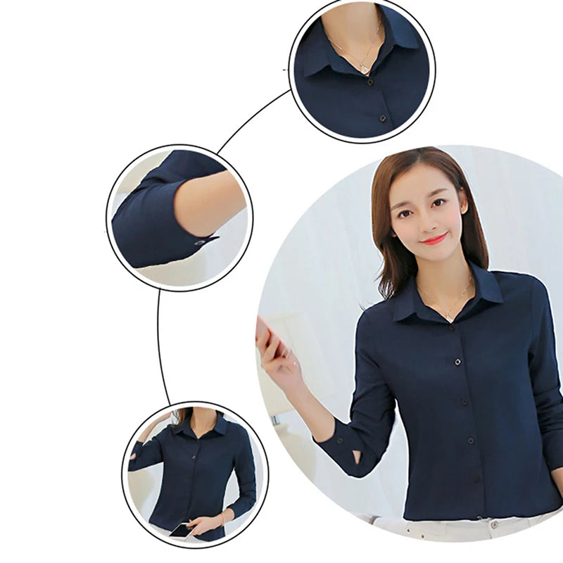 OL Work Wear White Blue Blouse Plus Size Long Sleeve Turn-down Collar Formal Elegant Ladies Female Shirt Ladies Tops School