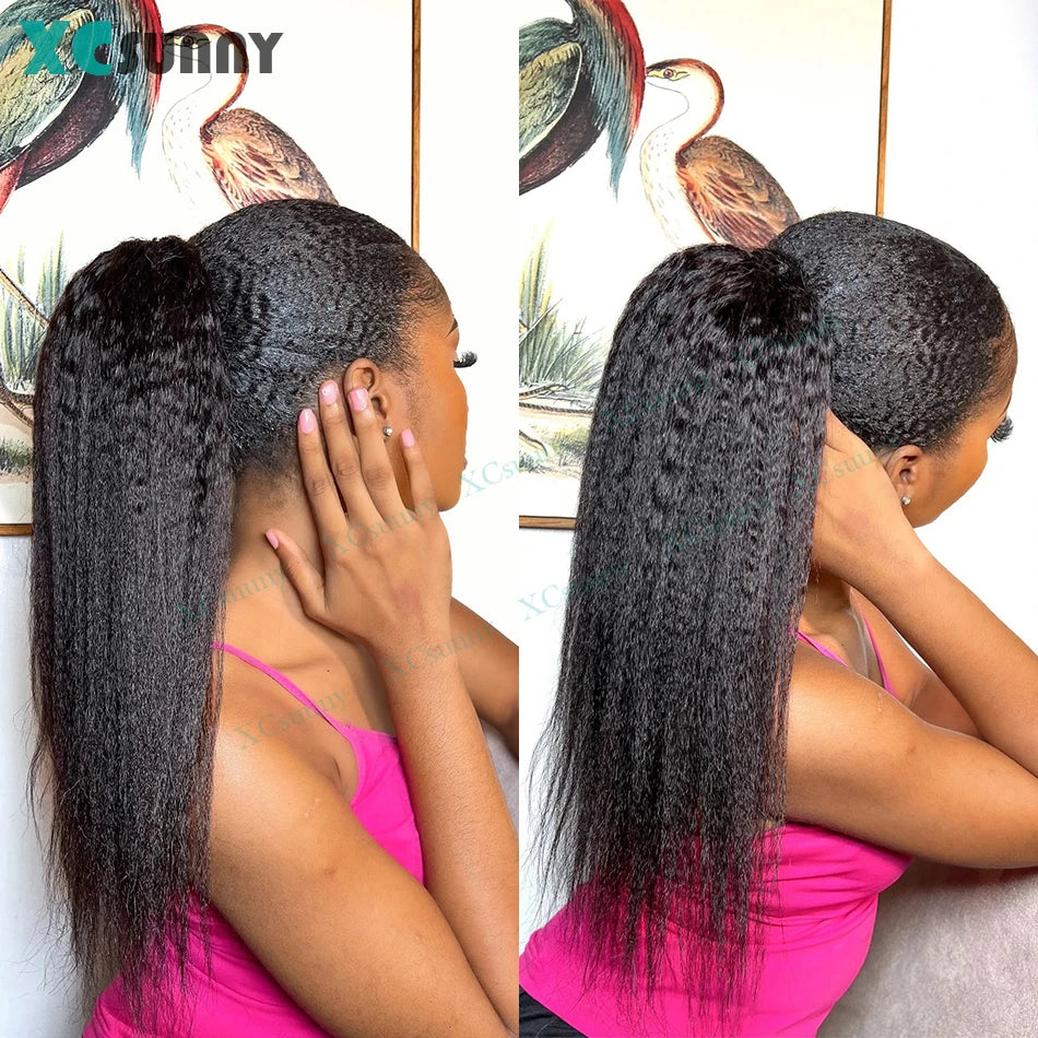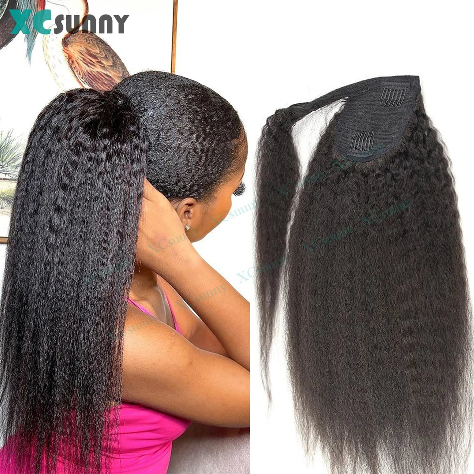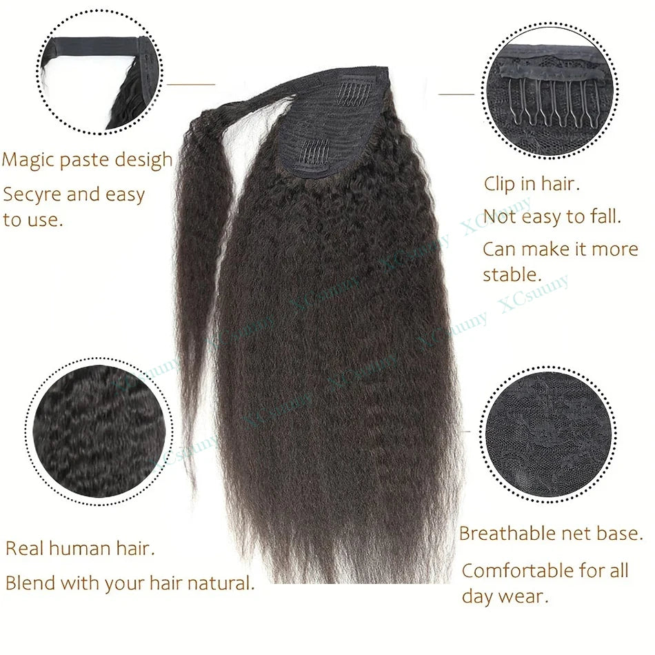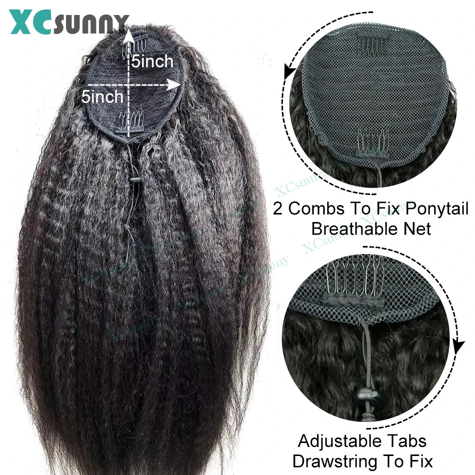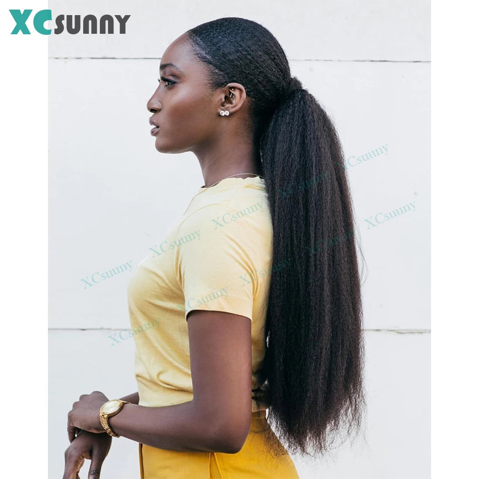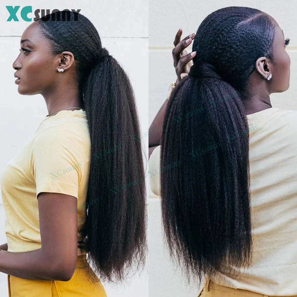 Kinky Straight Ponytail Human Hair
